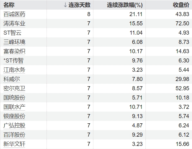 0 05-21 16:09158只个股连续上涨5个交易日及以上