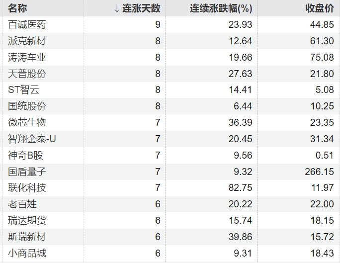 0 06-05 15:2185只个股连续上涨5个交易日及以上